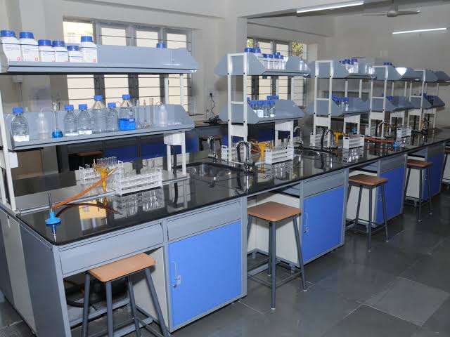 Physics Lab The Physics department of the science stream of the school is a well furnished one. The laboratory is scientifically equipped. "Excellence through practical reasoning" being the sole motto, students under the able guidance of the science teachers, perform and prepare various models on day to day technological advancement, topics ranging from space to oil management and bring laurels to the school. Chemistry Lab It has brought many laurels to this Institution. The dedicated faculty members are not only engrossed in imparting quality education to the students but also engaged in encouraging, initiating, motivating and guiding the students. The Chemistry Laboratory of this School is well equipped so that twenty five young geniuses can conduct experiments at a time, and with their practical knowledge, take part in various State and National level Science Exhibitions.